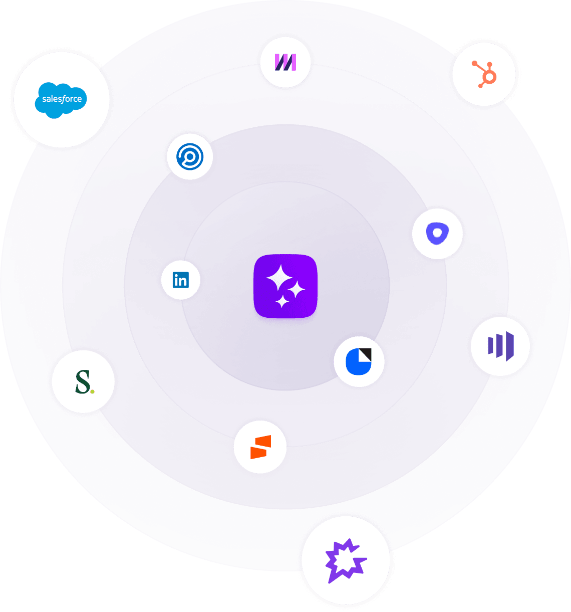 The image presents a modern, abstract data flow visualization where various platforms connect to a central entity, suggesting integration or a pipeline. The design uses subtle gradients and glowing lines against a dark background to convey a sense of connectivity and technological sophistication.