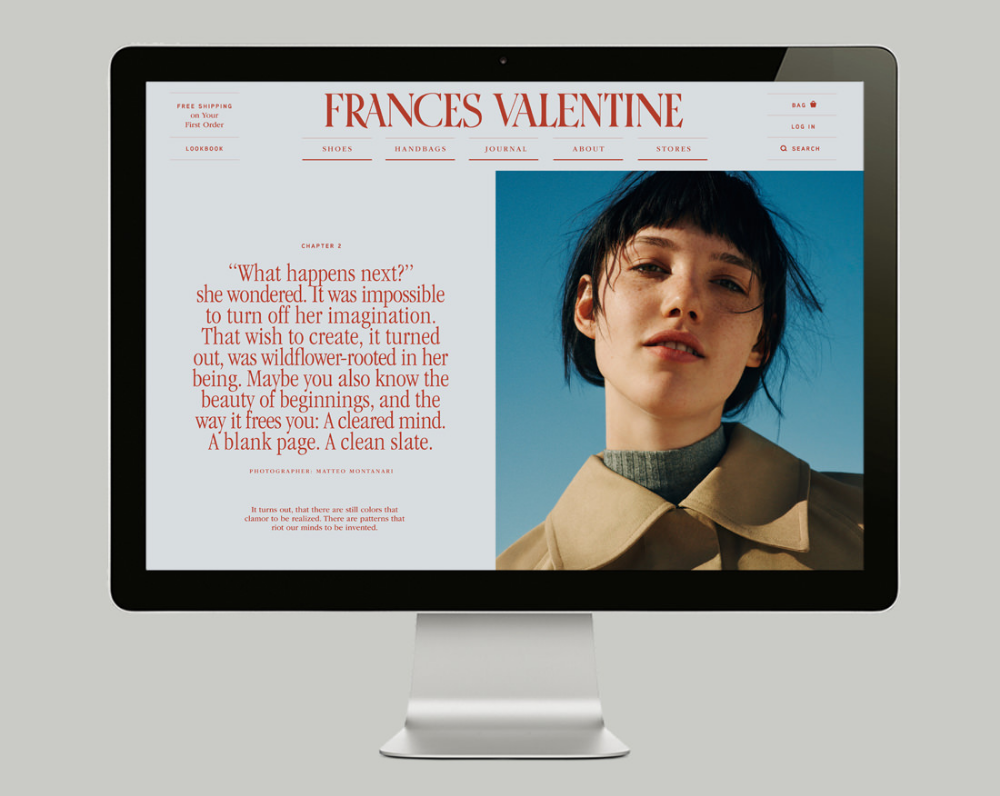 The design features a clean, minimalist aesthetic dominated by white space and a muted color palette, suggesting a sophisticated and introspective brand identity. The layout is balanced, using high-quality photography alongside clear, elegant typography to convey a sense of luxury and depth.