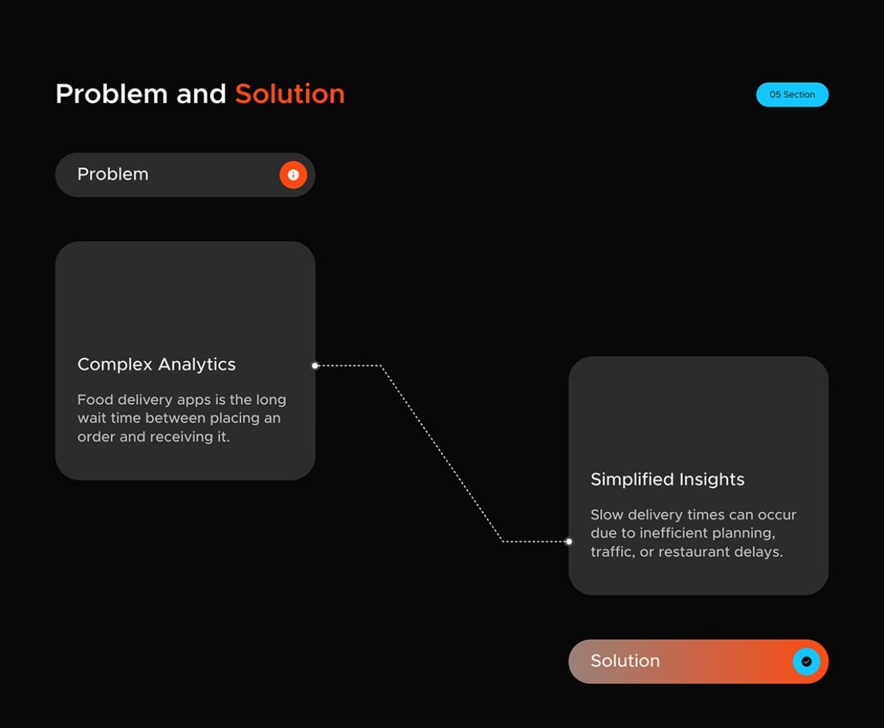 This design utilizes a dark mode aesthetic with high contrast, emphasizing clarity and structured data flow. The visual language is highly minimalist, relying on clean lines and distinct blocks to guide the viewer through a problem-solution narrative effectively.