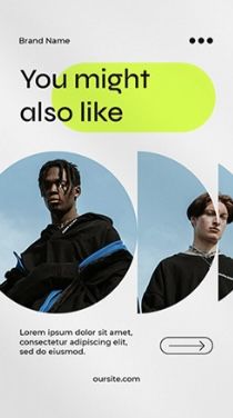 The design is minimalist and clean, utilizing a light gray background with bold, bright yellow accents to draw attention. It features a clear, modern layout designed for showcasing related products or content through large visual tiles.