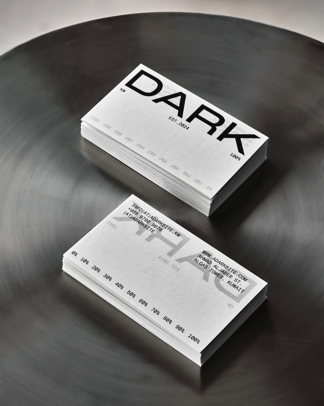 This design utilizes extreme high contrast between white text and a deep black background, creating a stark and minimalist aesthetic. The visual language relies entirely on typography to convey meaning, resulting in a clean, authoritative, and highly legible presentation.