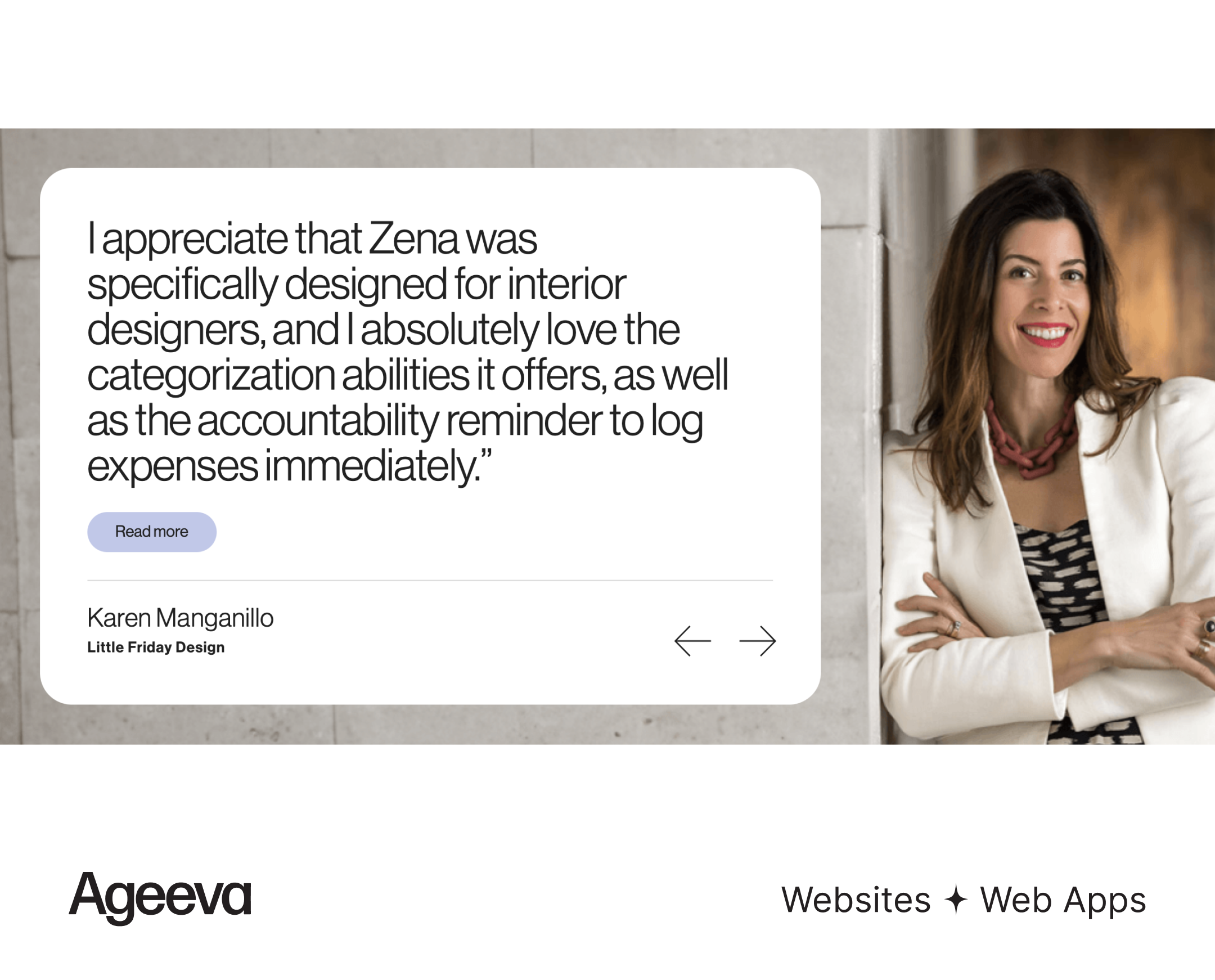 The image features a clean, professional testimonial displayed against a bright, minimalist background. The design emphasizes readability and trust through ample white space and clear typography, suggesting a modern and organized service.