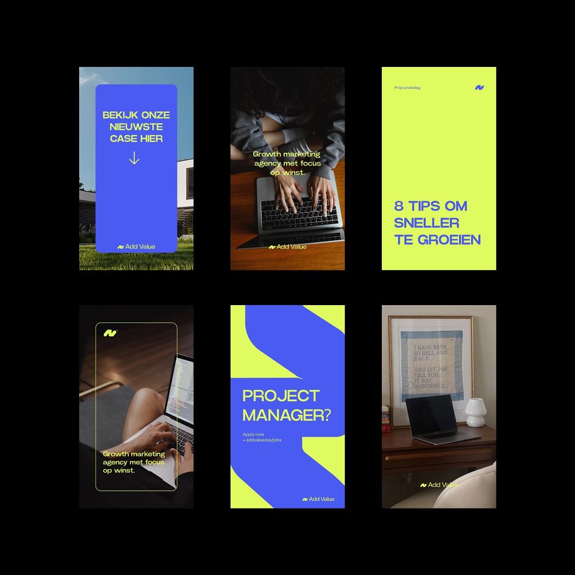 This image presents a series of clean, modern, and professional-looking digital mockups or promotional cards, characterized by strong use of negative space and a limited, vibrant color palette. The design language is minimalist yet informative, aiming for a contemporary business or consulting aesthetic.
