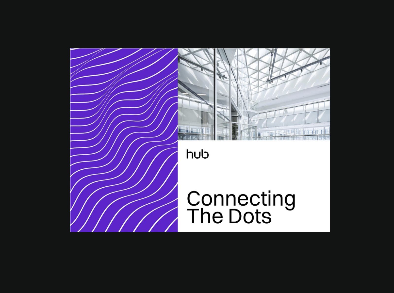 The image features a stark, modern design dominated by vibrant purple waves contrasting against a bright, architectural background. The composition is clean and graphic, utilizing strong lines to convey a sense of movement and connection.